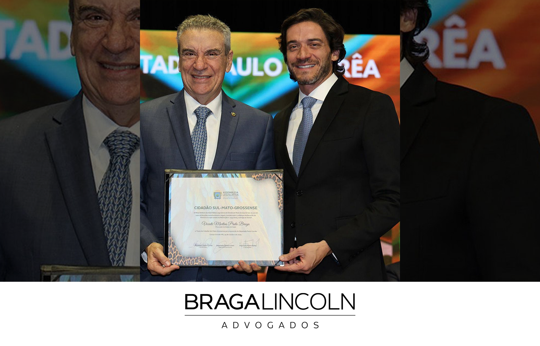 Vicente Braga recebeu o título de cidadão sul-mato-grossense, honraria concedida pelo estado de Mato Grosso do Sul. A homenagem simboliza o carinho e o reconhecimento do povo sul-mato-grossense. A indicação contou com o apoio do deputado estadual Paulo Corrêa e das procuradoras Fabiola Marquetti e Ana Carolina, responsáveis pela homenagem. Leia Mais